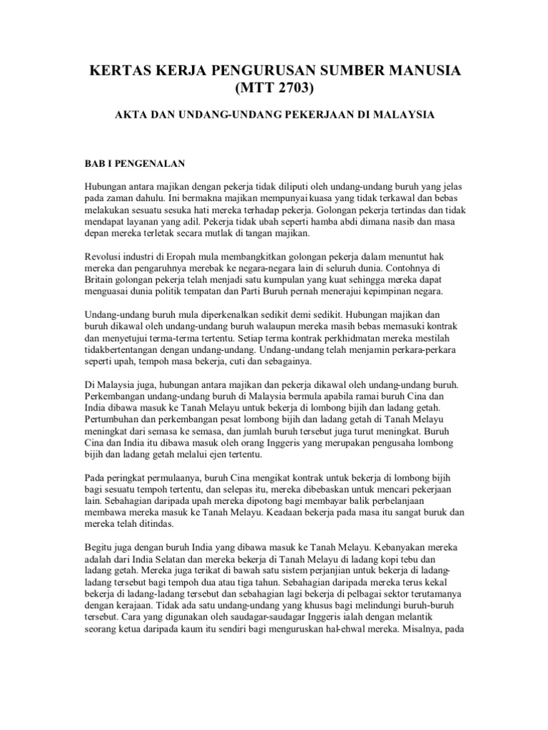 Akta Pekerjaan Bahasa Melayu Pdf.